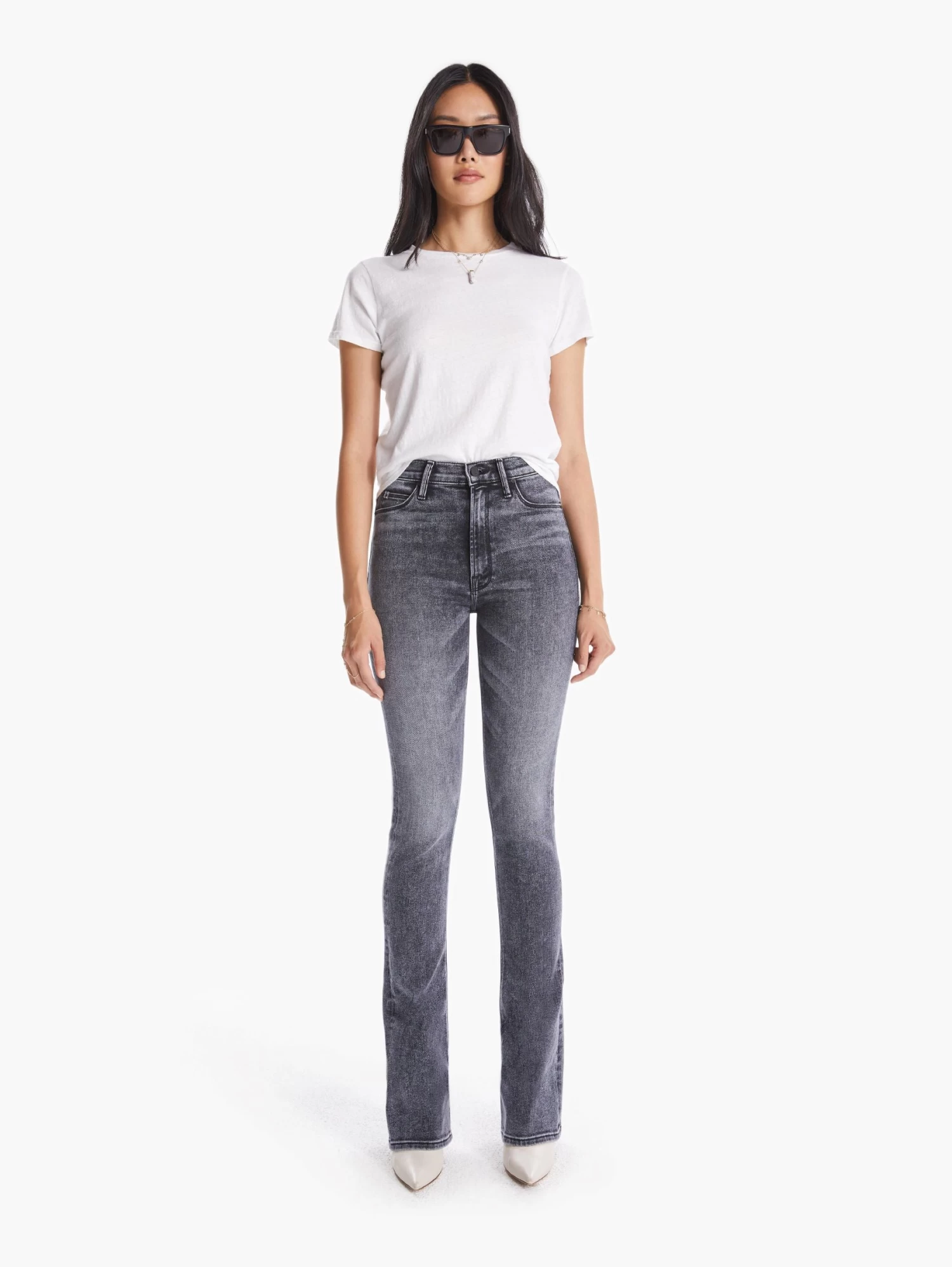 Back on track. A classic high-rise flare with a 34-inch inseam. Cut from soft stretch denim, Train Stops is a black mineral wash with high contrast fading throughout.