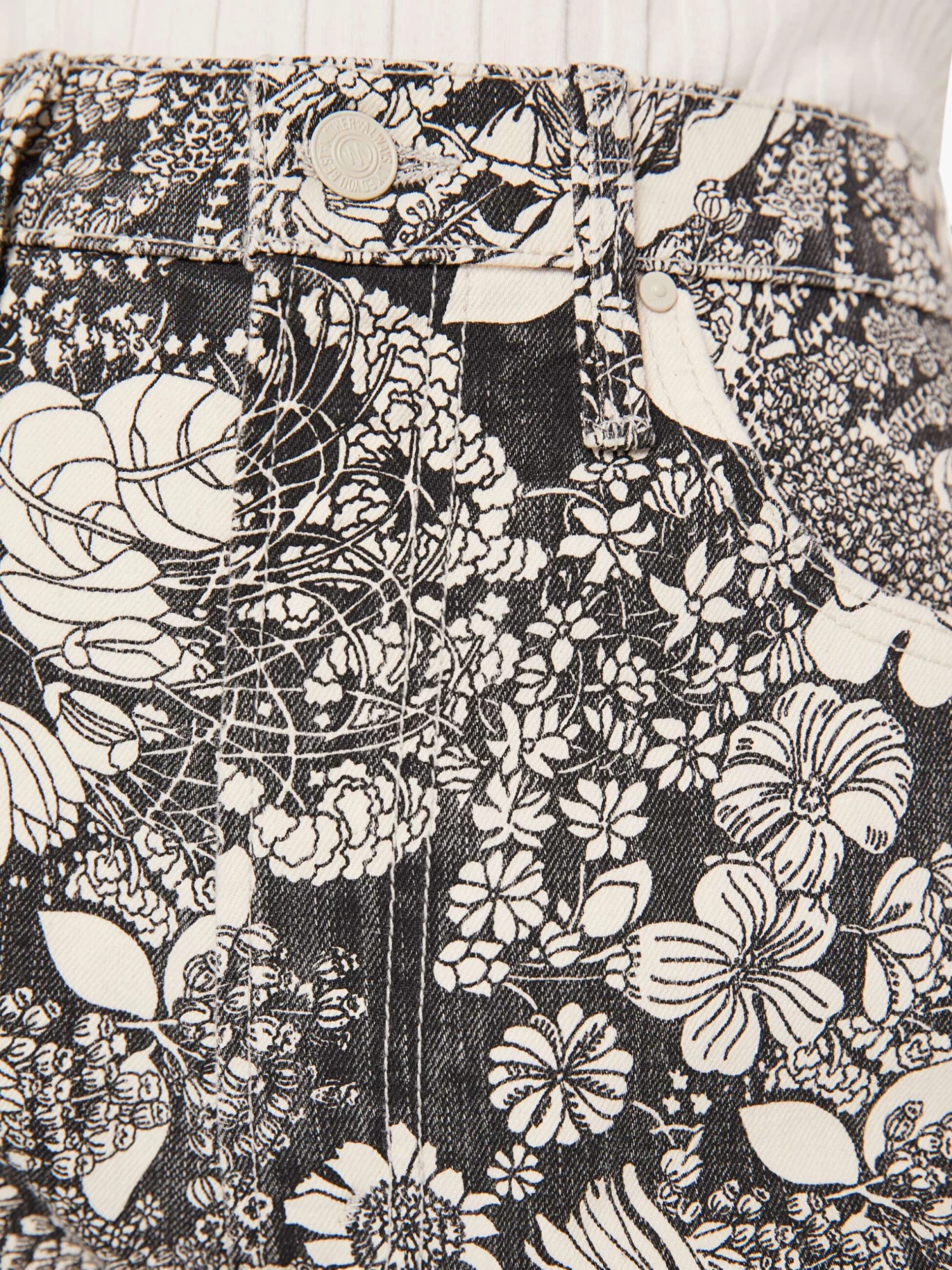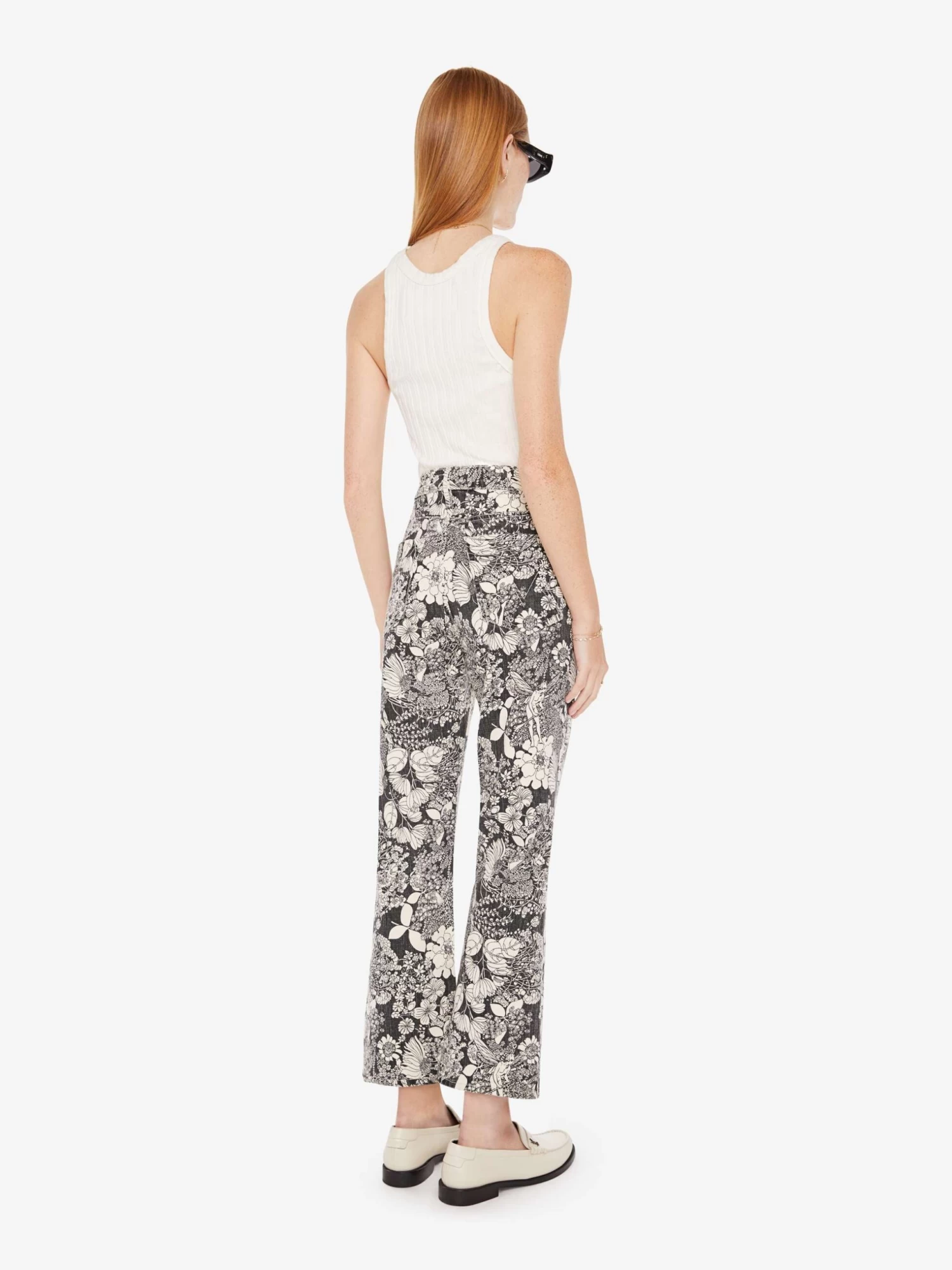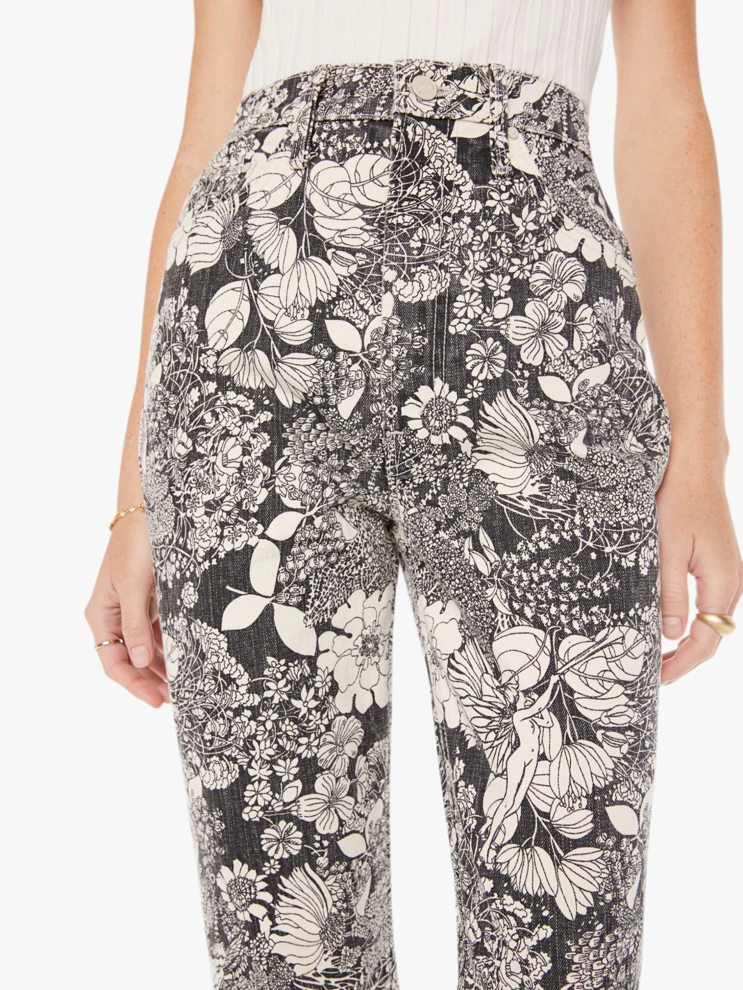 Once upon a time. This high-rise flare has an ankle-length inseam and a clean hem. Cut from cotton with a touch of stretch, French Fairy Tale is a faded black and cream floral print.