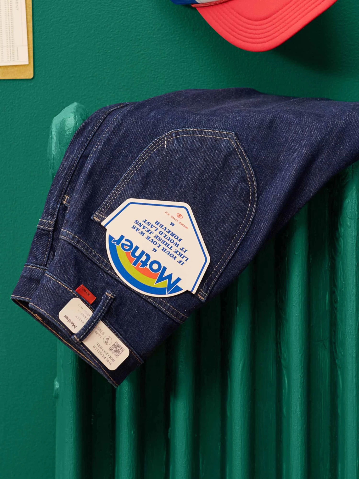 Finders keepers, losers weepers. Semi-rigid wide-leg jeans from MOTHER’s Lost & Found capsule, which looks back on the iconic styles of the 70s and 80s, and features the kind of things you would have seen in a high school locker room — when you weren’t trying to scrimmage but still wanted to look cute. These high-rise jeans are designed with a 34-inch inseam, clean hem and curved patch pockets on the back. Cut from semi-rigid denim, Dude, Where Are My Jeans? is a dark-blue, deadstock-inspired wash.