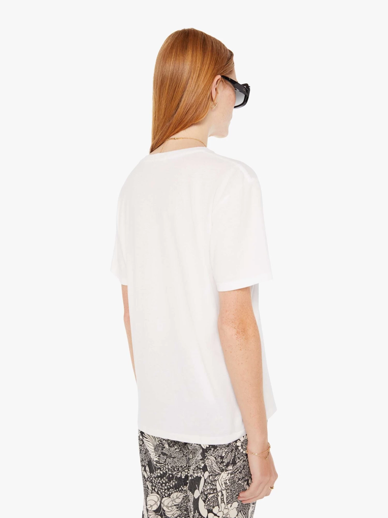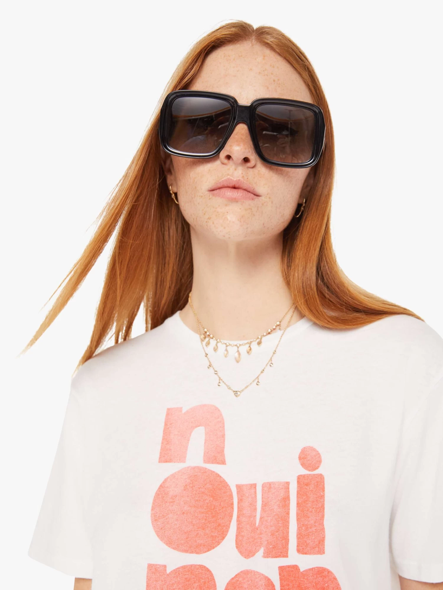 Yes or no? A crewneck tee with an oversized fit and a clean hem. Made from 100% cotton, the white tee features a faded peach text graphic in French on the front.