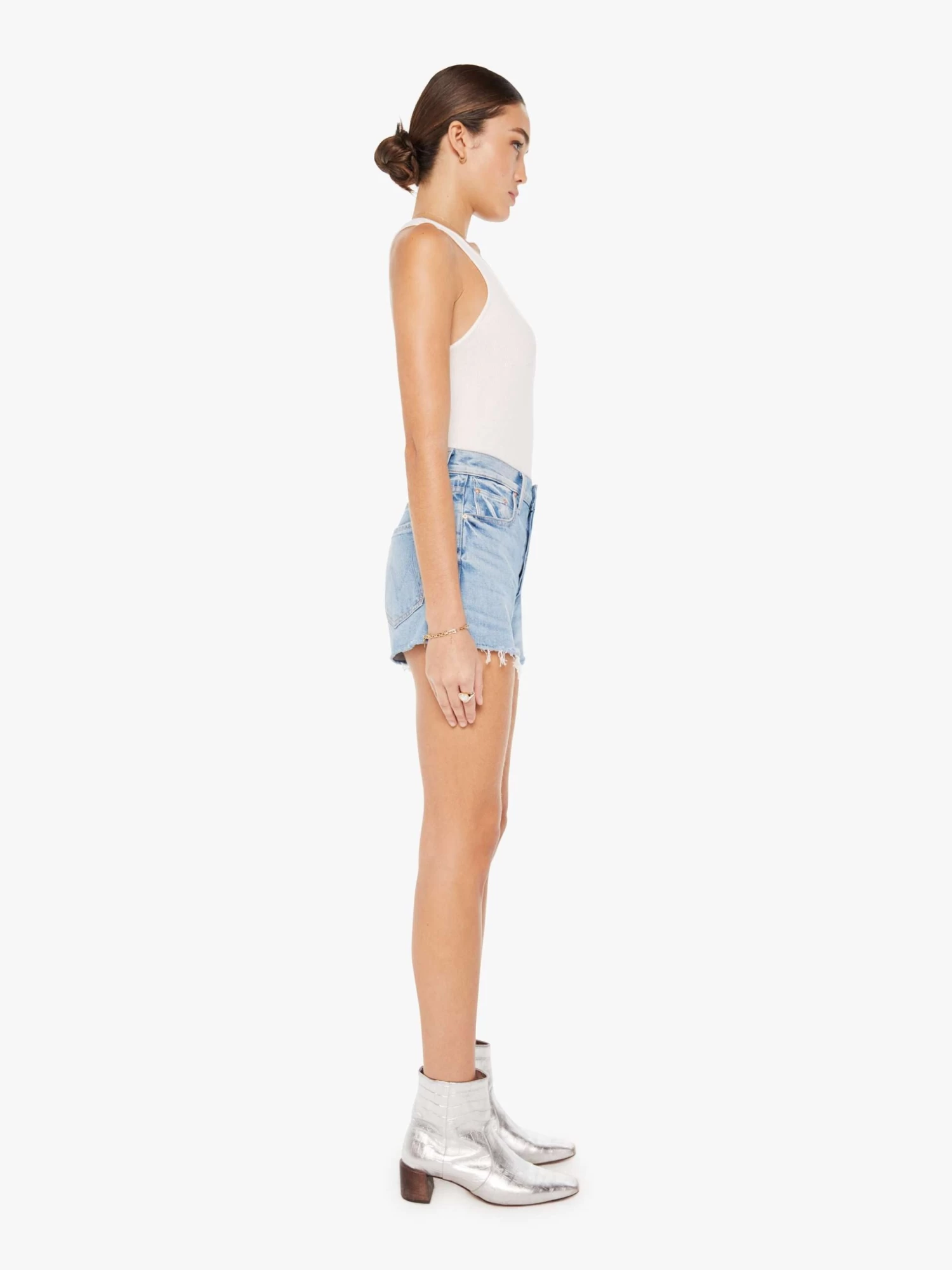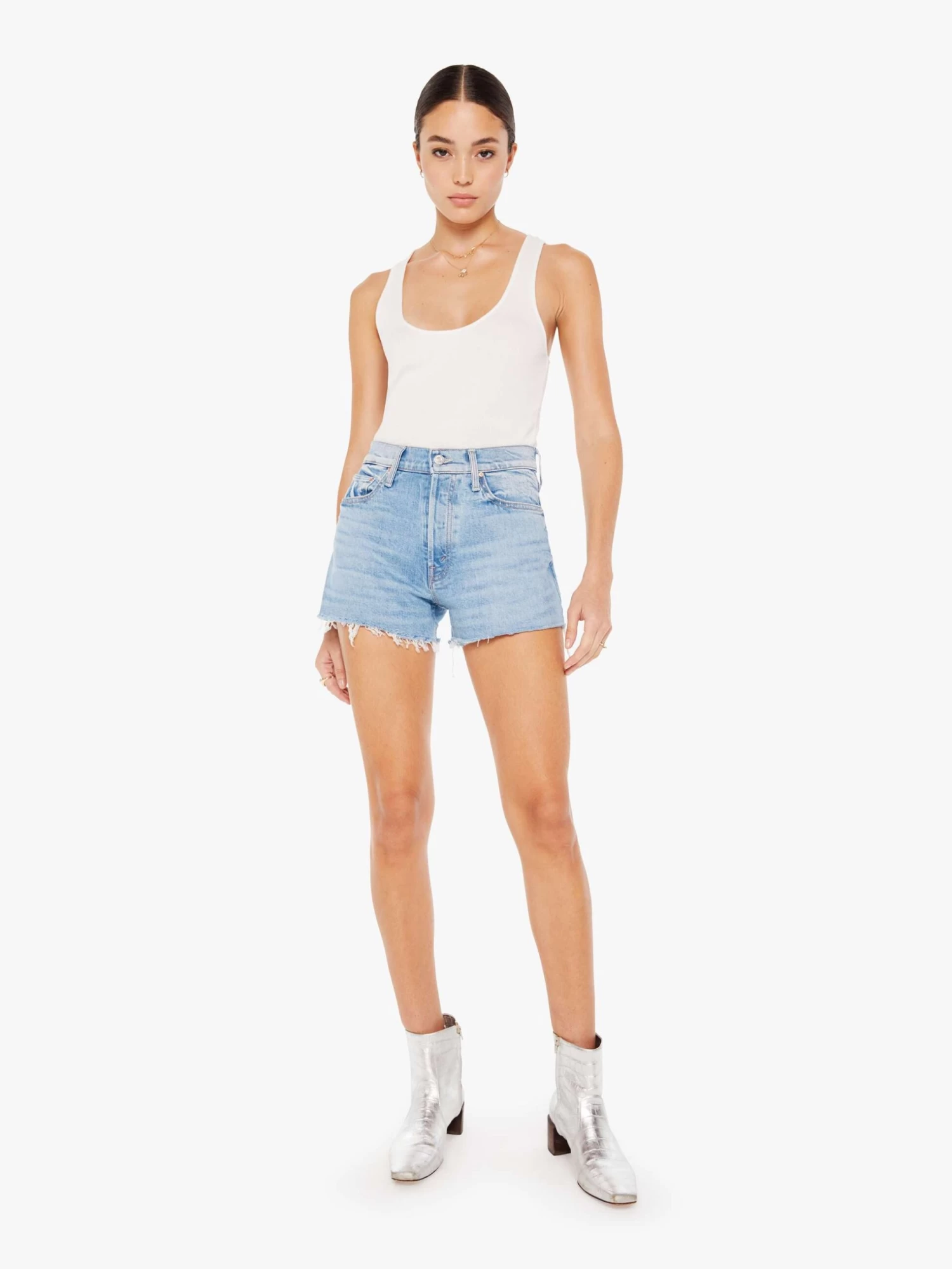 Bon appetit. Our bestselling high-waisted jean shorts with a button fly and a frayed hem. Made from semi-rigid SUPERIOR denim, Let Them Eat Cake is a vintage-blue wash with whiskering and fading.